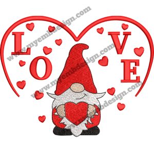 Valentine Gnome Embroidery for Apparel